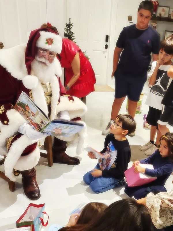 STORY TIME WITH SANTA during his visit is a heartwarming and magical moment that brings the true spirit of Christmas to life. As Santa gathers everyone around, children and families become completely captivated, listening closely as he reads either the classic holiday tale “‘Twas the Night Before Christmas “ or a book of your choice with warmth, excitement, and cheerful expression.